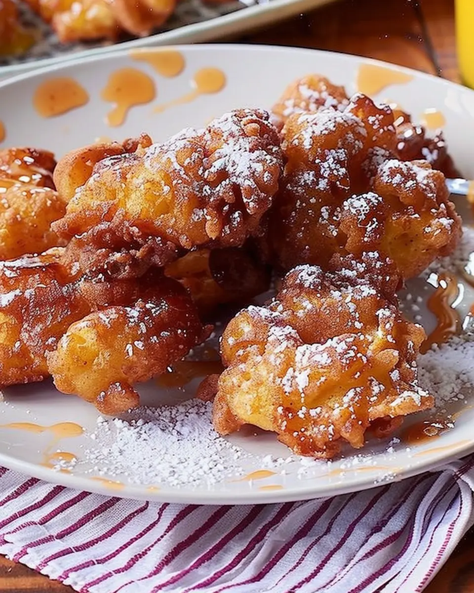 While the fritters are frying, you can whip up a simple glaze. Combine 1 cup of powdered sugar with a few tablespoons of milk or water and a splash of vanilla extract until smooth. The consistency should be thick enough to coat but thin enough to drizzle over your fritters.