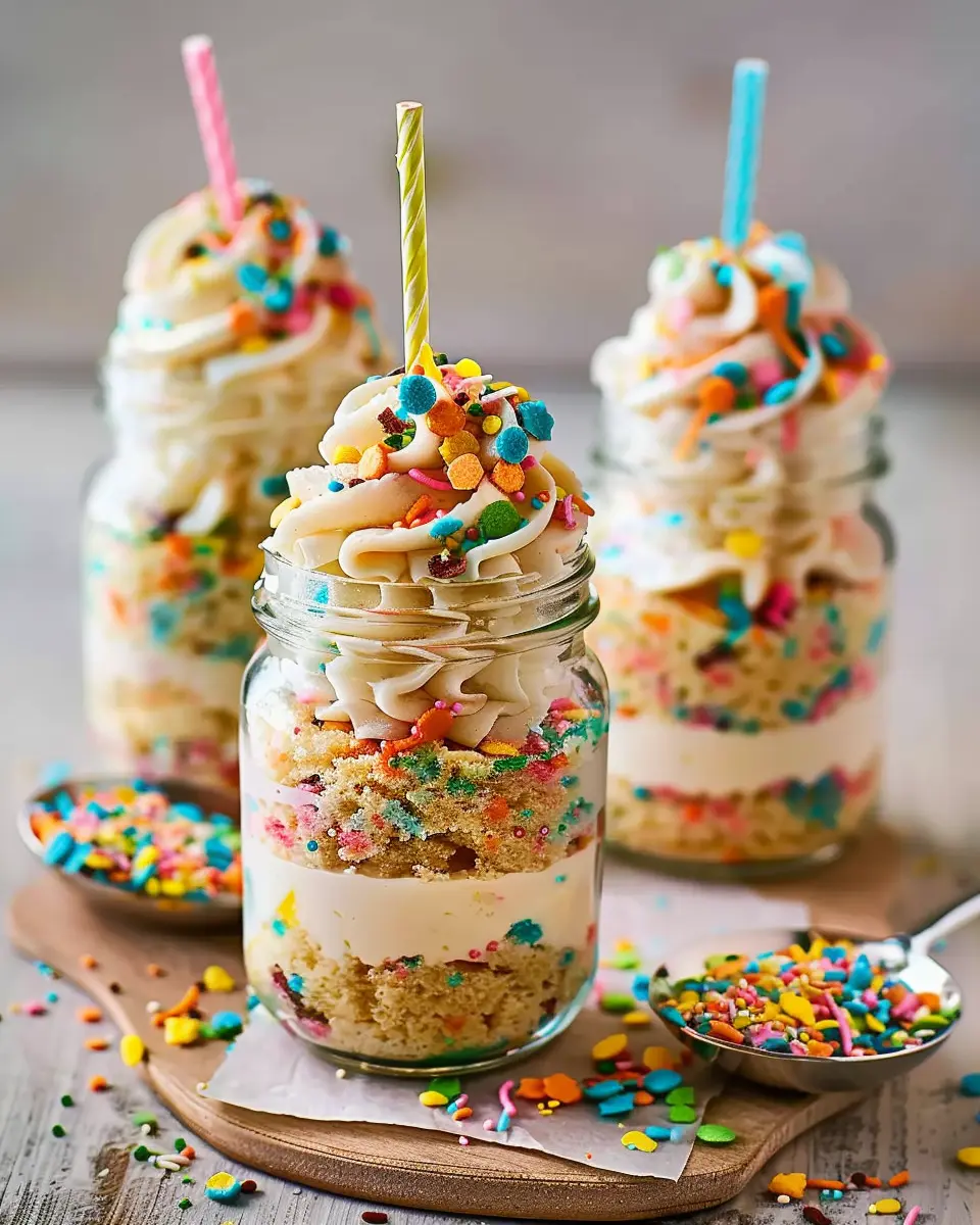 This delightful dessert combines the joy of birthday cake with the convenience of a jar, making it a perfect treat for any celebration.