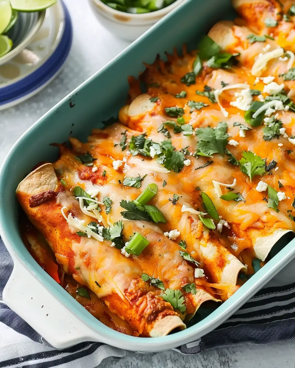 Absolutely! Making buffalo chicken enchiladas ahead of time is a fantastic way to save yourself some stress during a busy week or when you’re hosting friends. You can assemble the enchiladas, place them in a baking dish, and cover them tightly with foil. Store them in the fridge for up to 24 hours before baking. If you want to prepare them further in advance, feel free to freeze the uncooked enchiladas. Just remember to thaw them overnight in the fridge before baking, and they may require a few extra minutes in the oven.