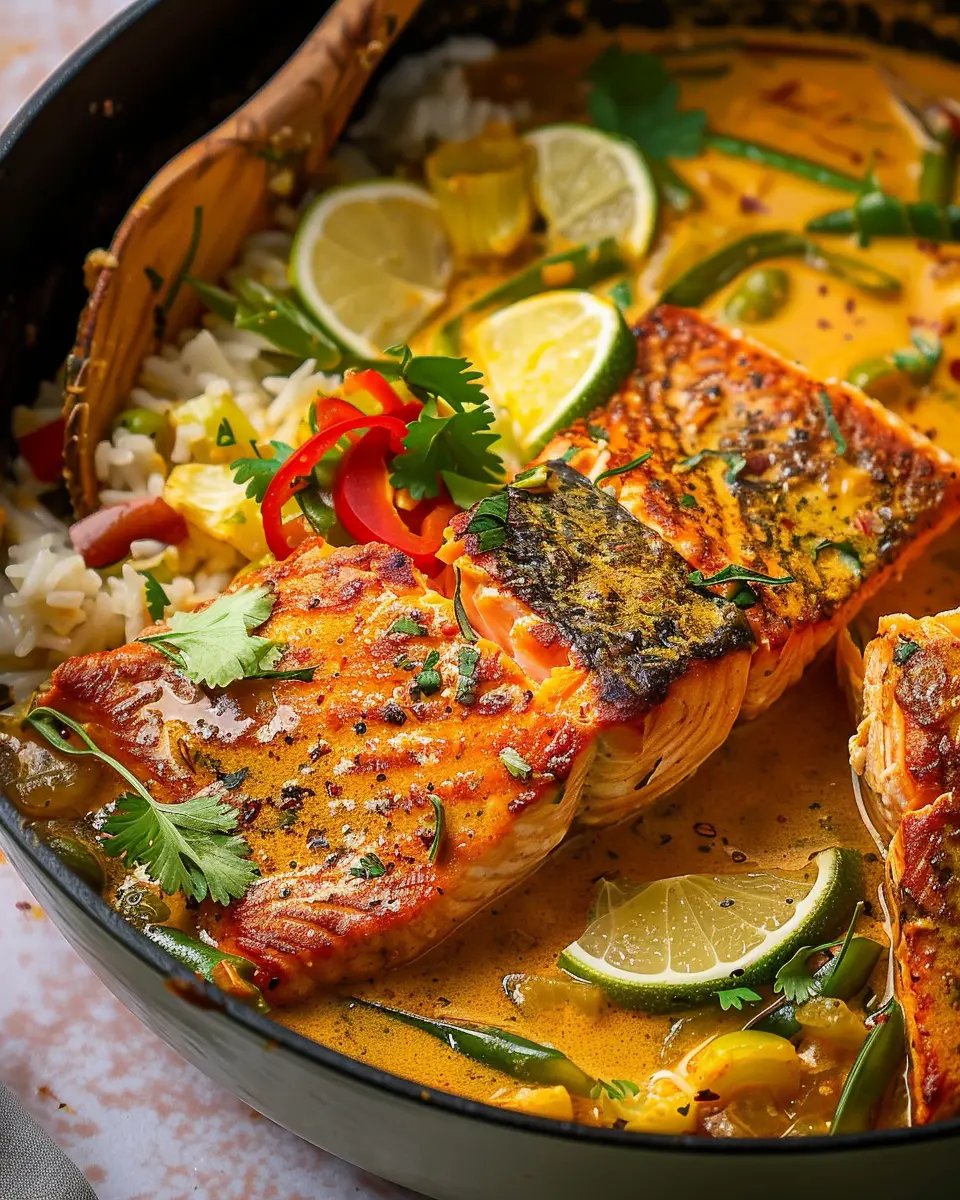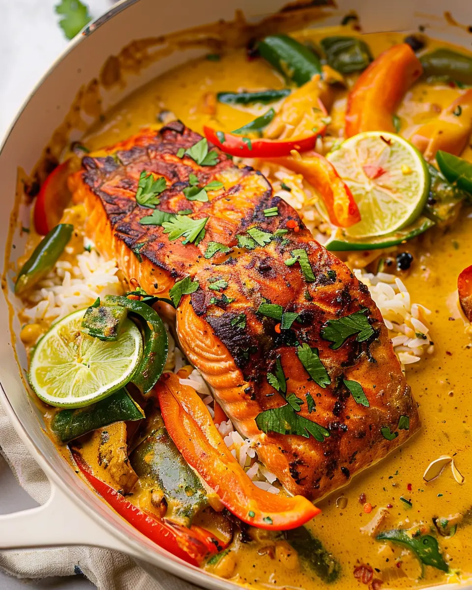 PrintCaribbean Coconut Curry Salmon: Easy and Indulgent Recipe for Home Cooks
