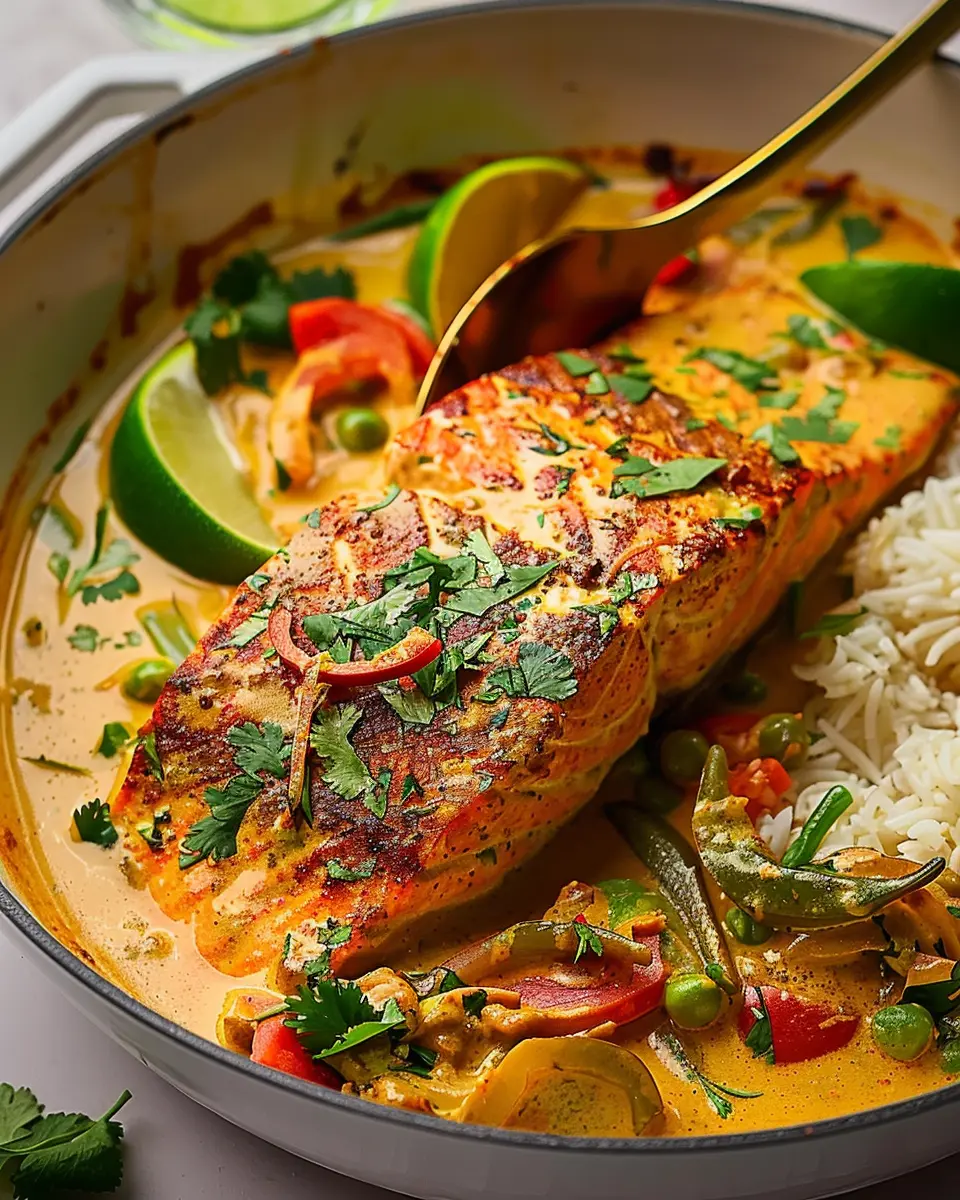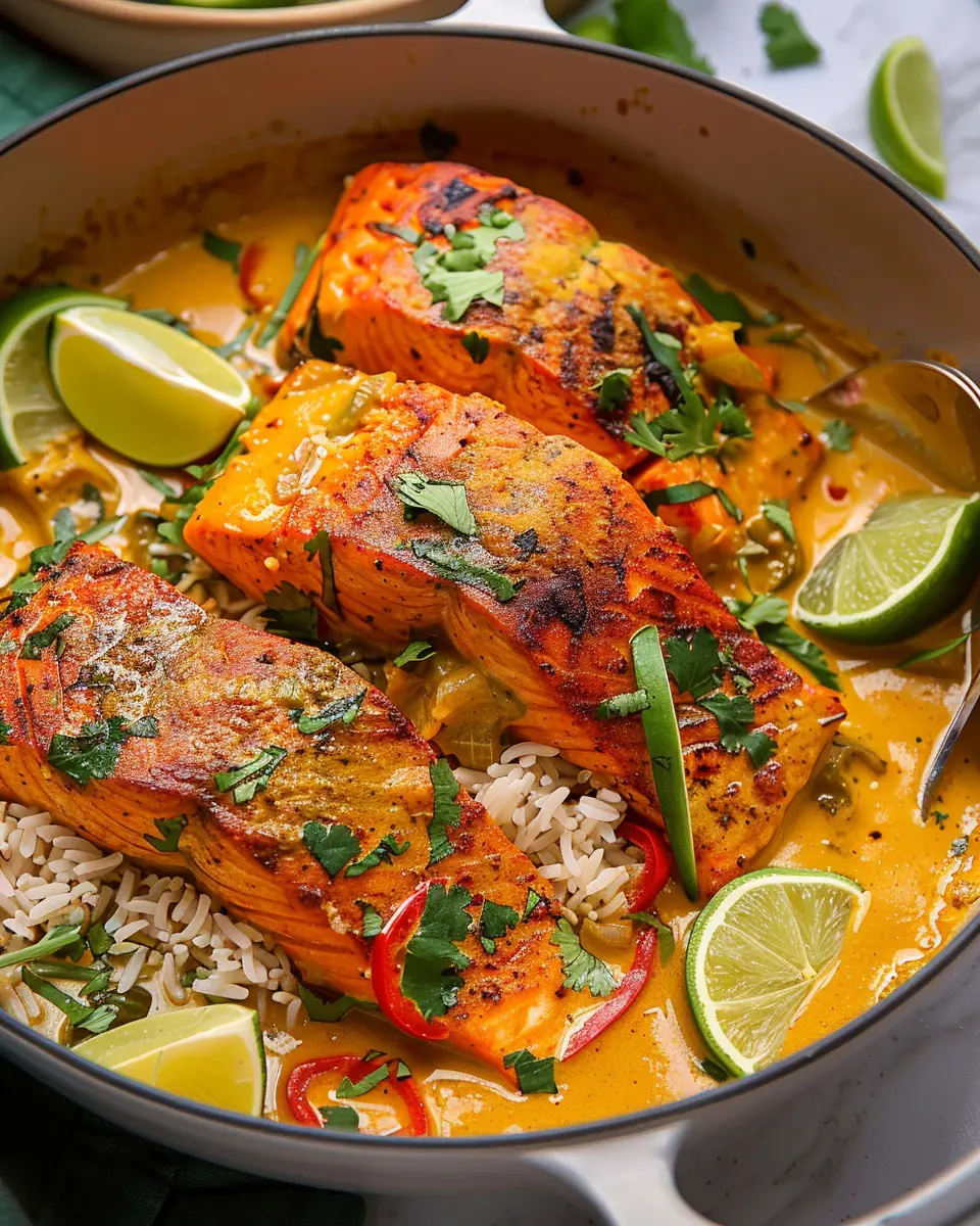 Absolutely! This dish is perfect for meal prep. You can prepare the coconut curry sauce in advance and store it in the refrigerator for a couple of days. When you’re ready to eat, simply cook the salmon fresh, pour the sauce over, and enjoy a home-cooked meal in no time. For best results, store the curry and salmon separately if you plan to keep leftovers; this helps maintain the salmon’s texture.