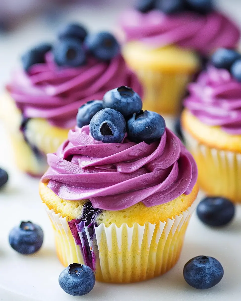 Lemon Cupcakes with Fresh Blueberry Buttercream Bliss