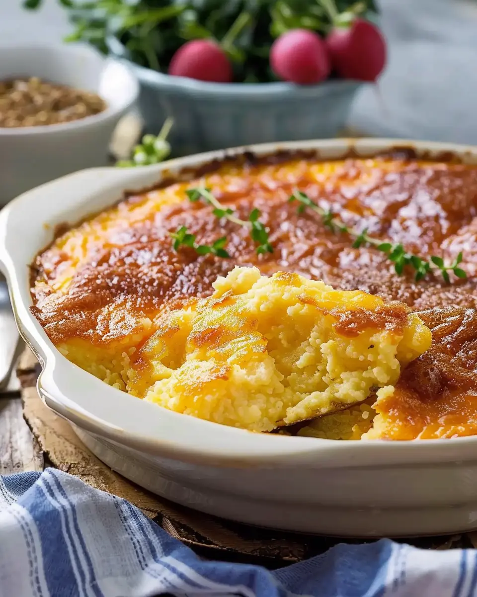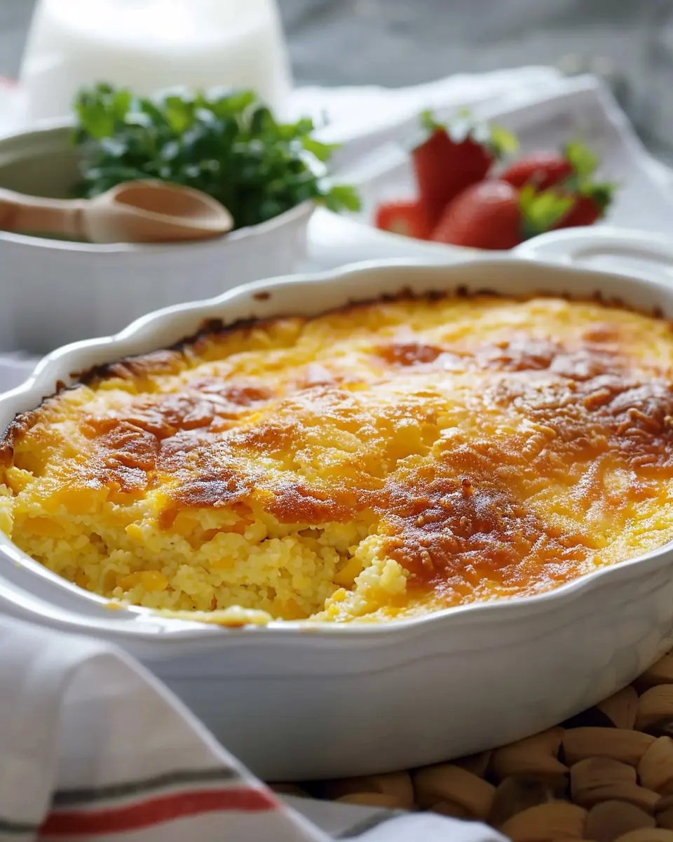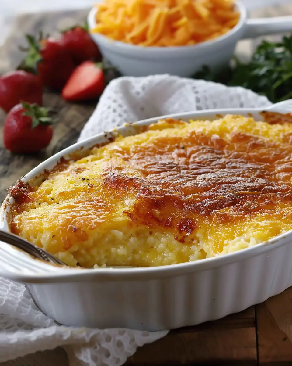 A creamy and cheesy southern dish that combines grits and cheddar cheese for a warm and satisfying casserole.