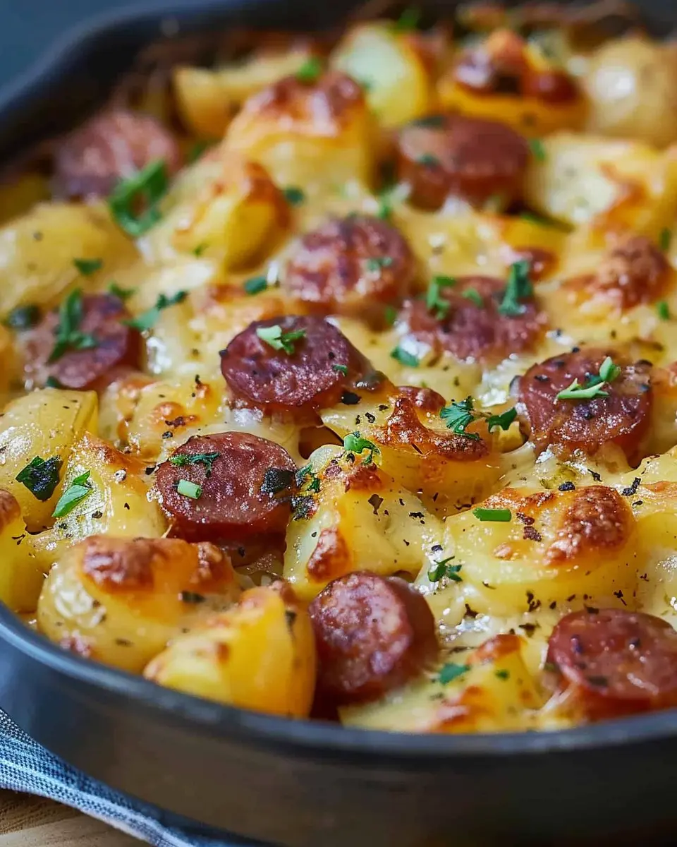 Keywords: Cheesy Ranch Potatoes, Smoked Sausage, Comfort Food, Easy Recipe