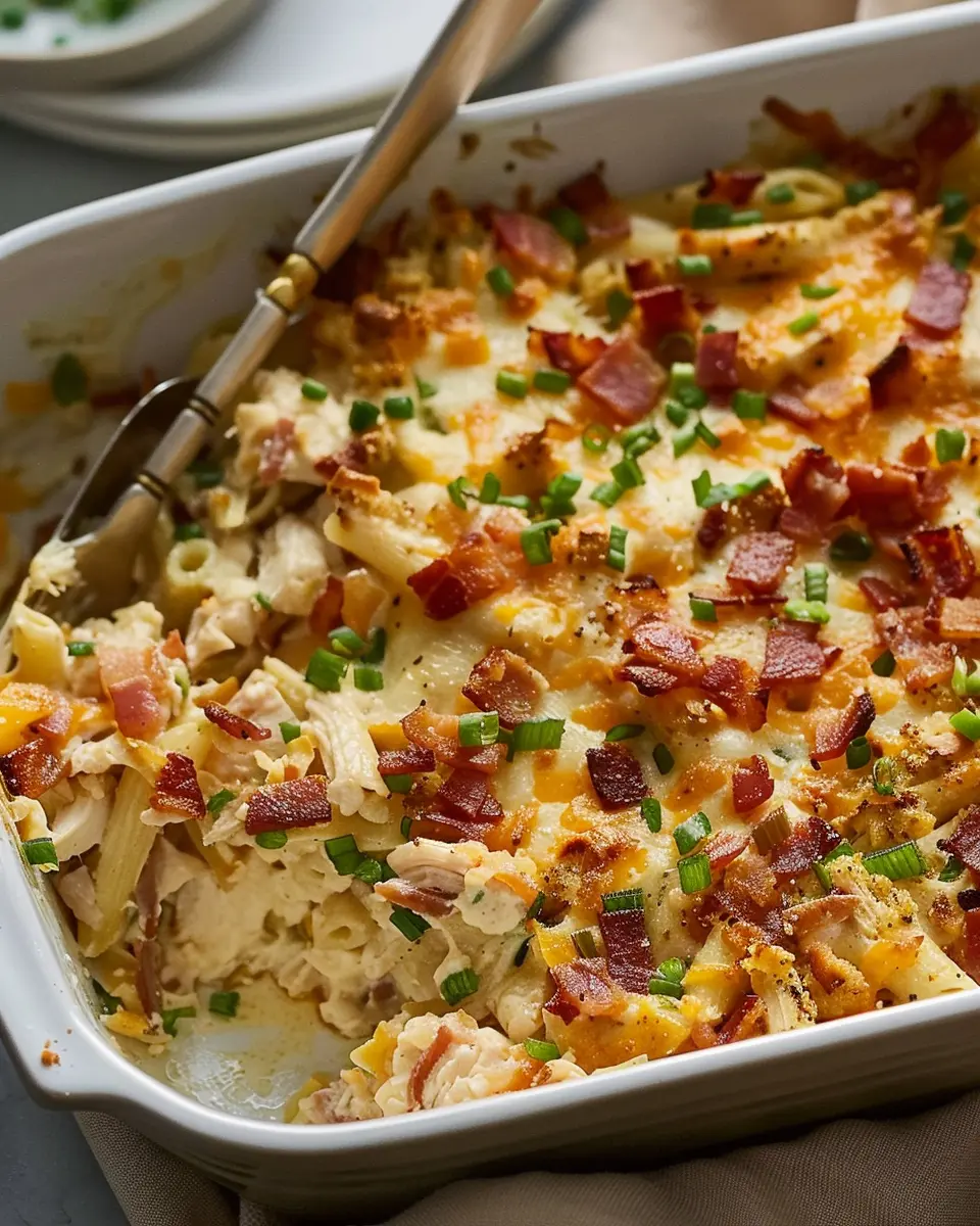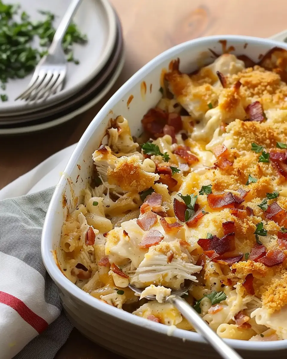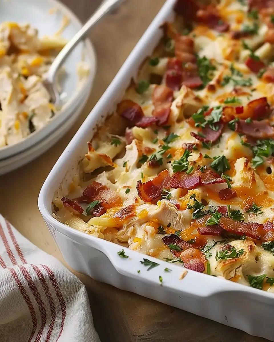 Chicken Bacon Ranch Casserole is a hearty, delicious dish that combines tender chicken, crispy bacon, and creamy ranch flavors. Perfect for a family dinner!