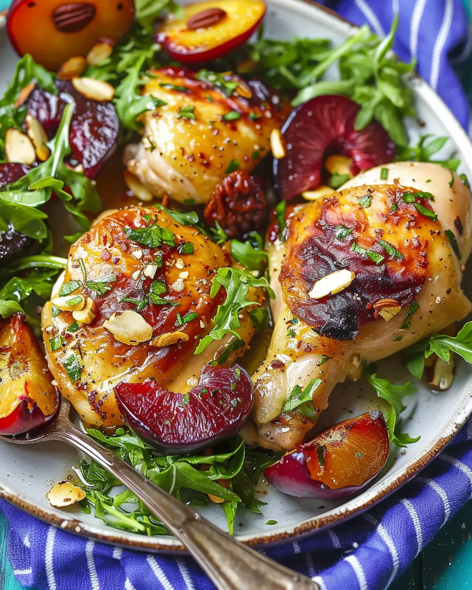 While Chicken with Roasted Plums is a delightful dish on its own, trying out different stone fruits can give a fresh twist to this classic recipe. Consider using peaches or nectarines for a sweeter profile, or apricots for a hint of tartness. Each fruit adds its unique flavor, enhancing the overall dish. Incorporating seasonal fruits not only diversifies your cooking but also makes it visually appealing!