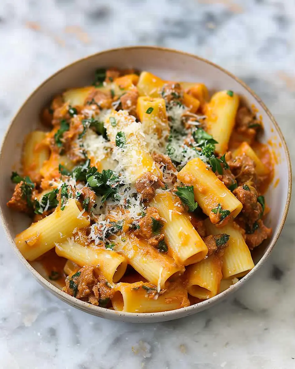 - Rigatoni pasta: The ridges hold onto the sauce beautifully.