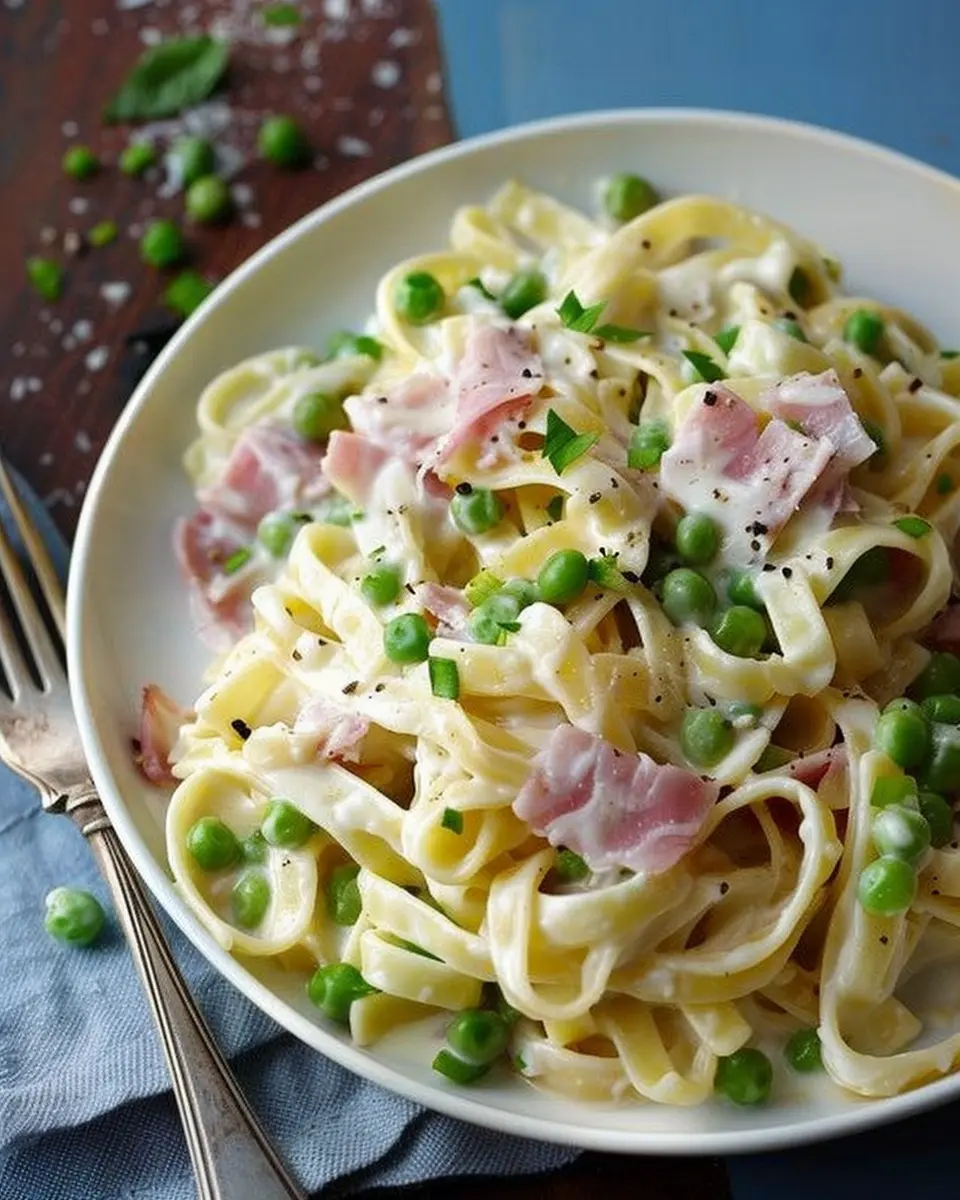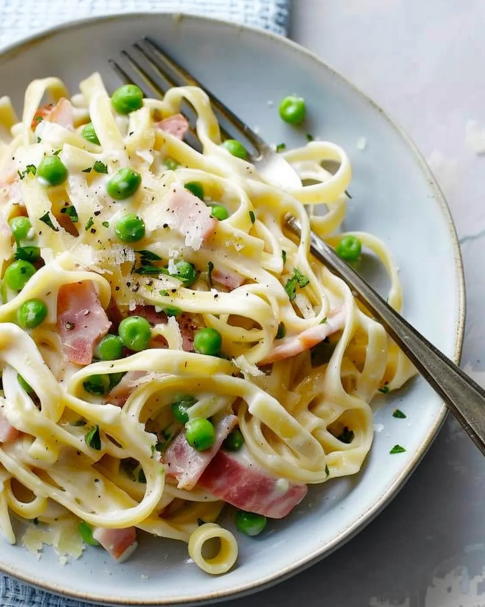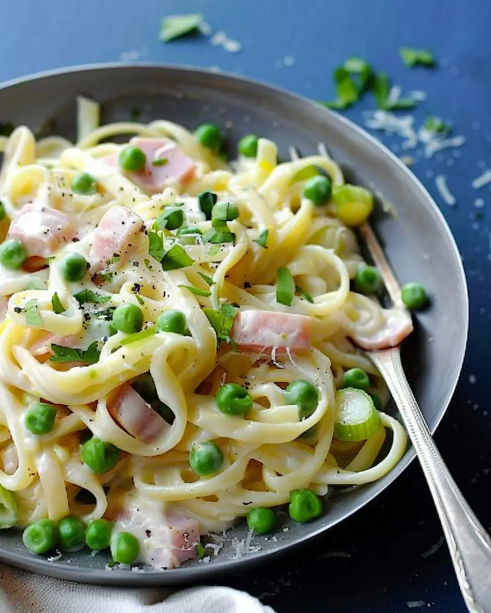 In summary, Creamy Pasta with Leeks, Peas & Chicken Ham is not just a meal; it’s a delightful experience waiting to unfold on your dinner table. The creamy sauce coats each strand of pasta perfectly, while the leeks and peas add a touch of freshness and color that makes every bite satisfying. Whether you’re whipping this up for a weeknight dinner or impressing guests at a dinner party, you’ll appreciate how easy it is to create something so comforting and flavorful. Don’t be afraid to personalize this recipe—try adding your favorite herbs or vegetables. Happy cooking!