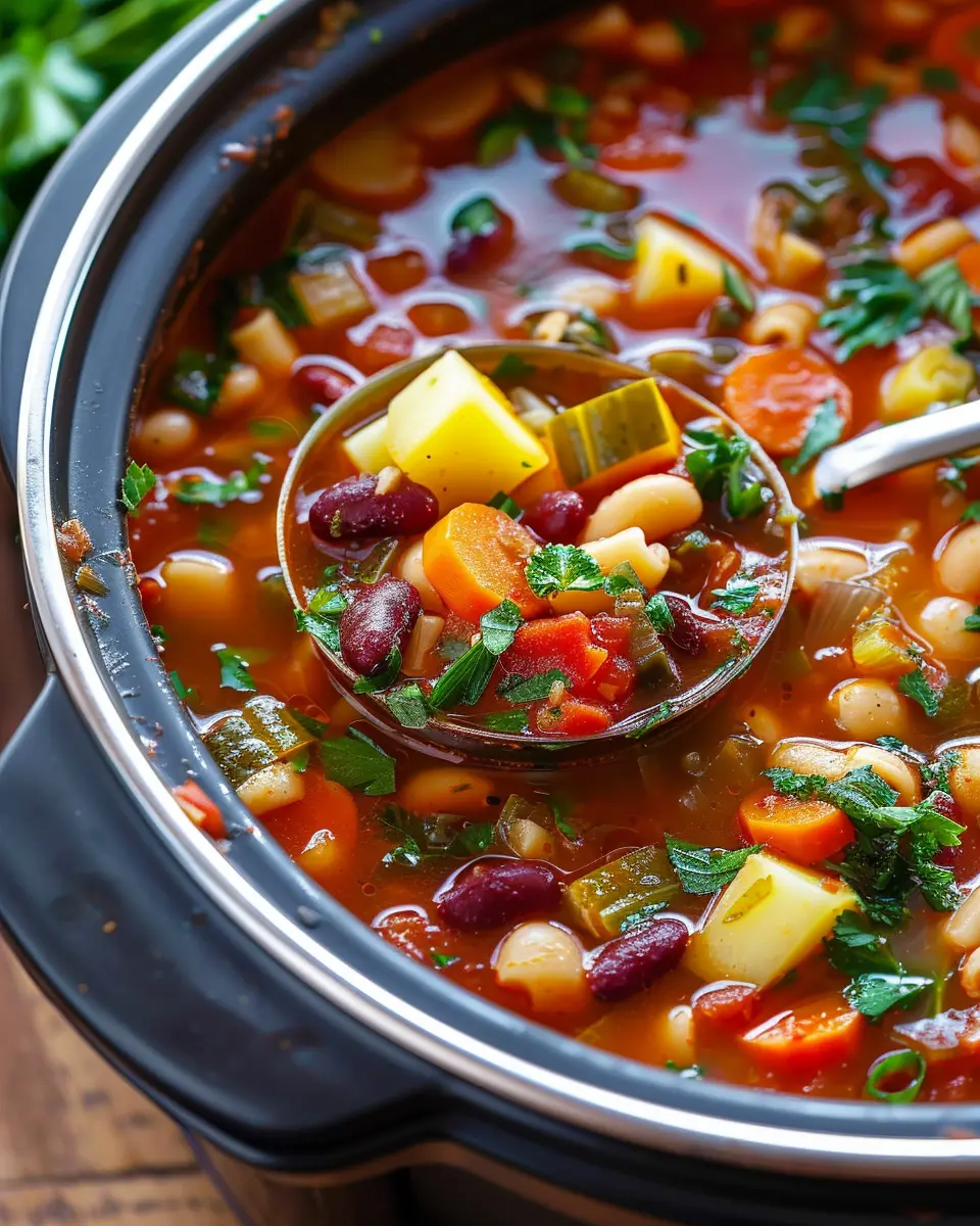 PrintCrockpot Minestrone Soup: Easy Comfort Food with Turkey Bacon