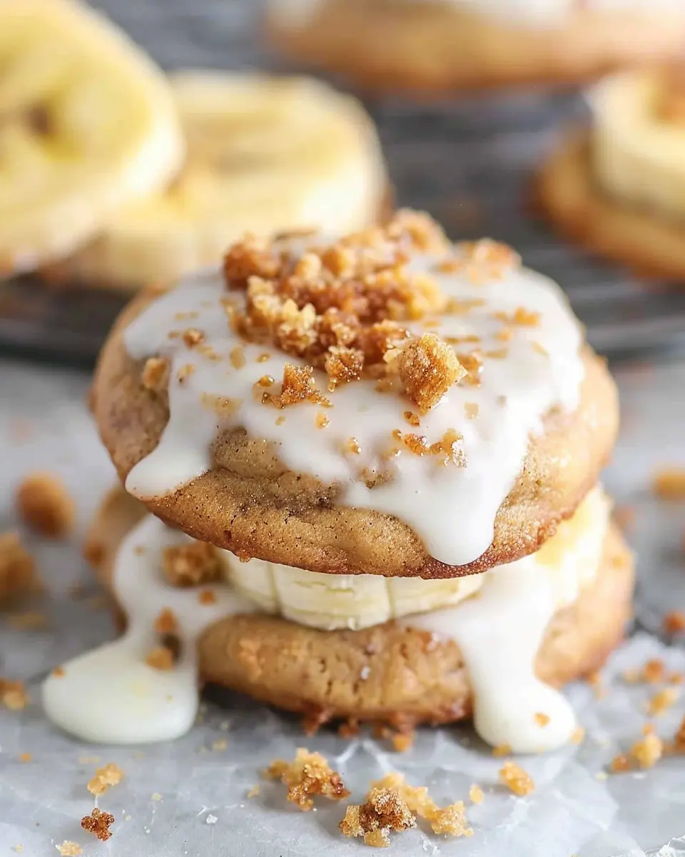 Keywords: Crumbl, Banana Bread Cookies, Cream Cheese Glaze, Easy Recipe
