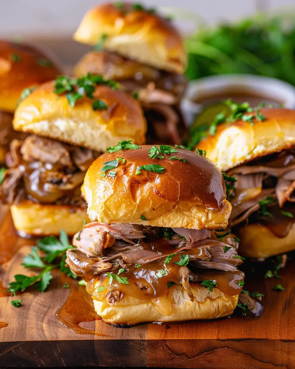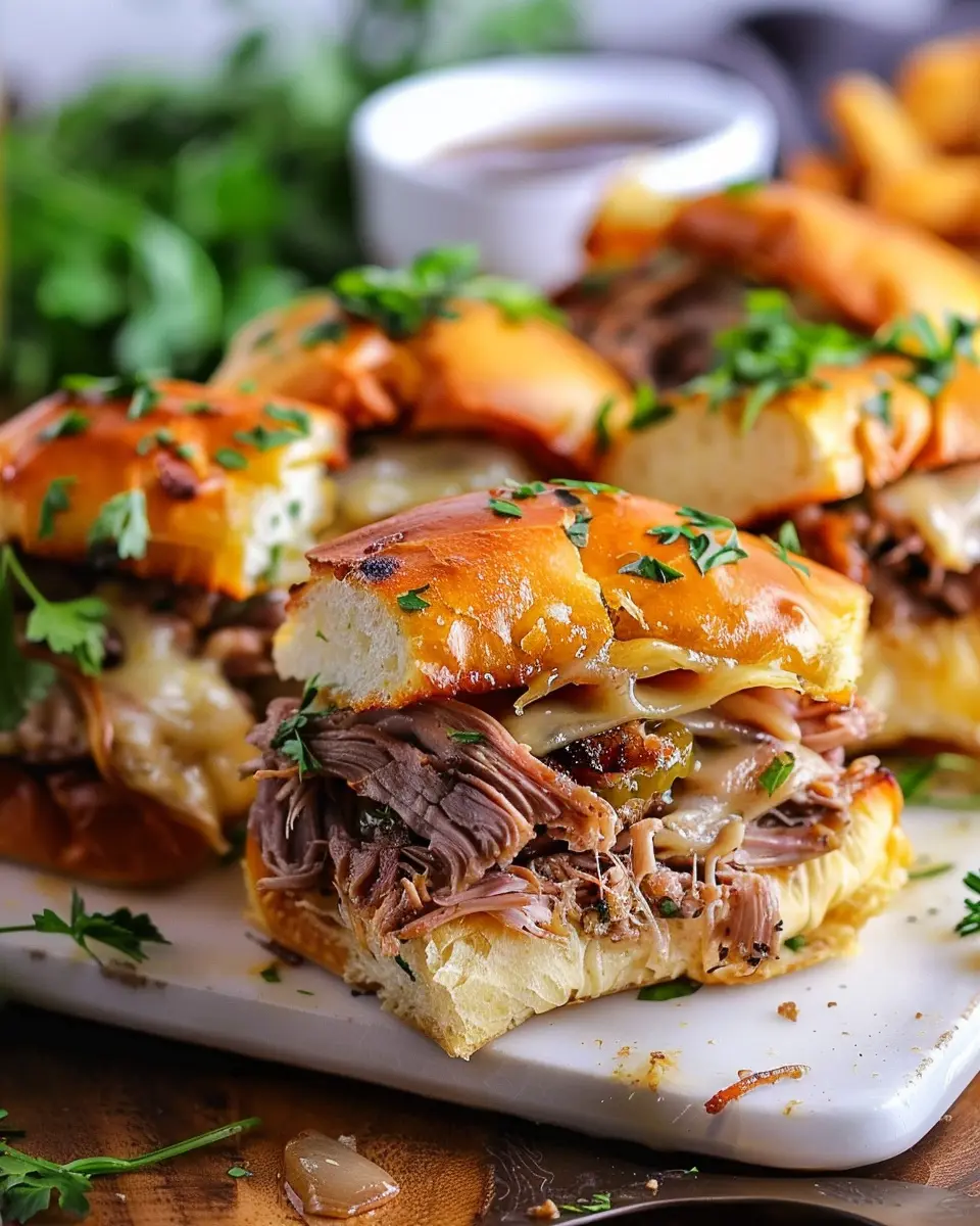 Why are these sliders perfect for someone like you? For starters, they are incredibly versatile. You can whip them up for a casual weeknight dinner or serve them at a gathering with friends—everyone will be reaching for seconds! Plus, they involve just a handful of ingredients, ensuring that you aren’t spending an entire evening in the kitchen. Imagine sinking your teeth into a warm slider, packed with tender beef and melted cheese, all while the savory au jus awaits for you to dip into. Is your mouth watering yet?