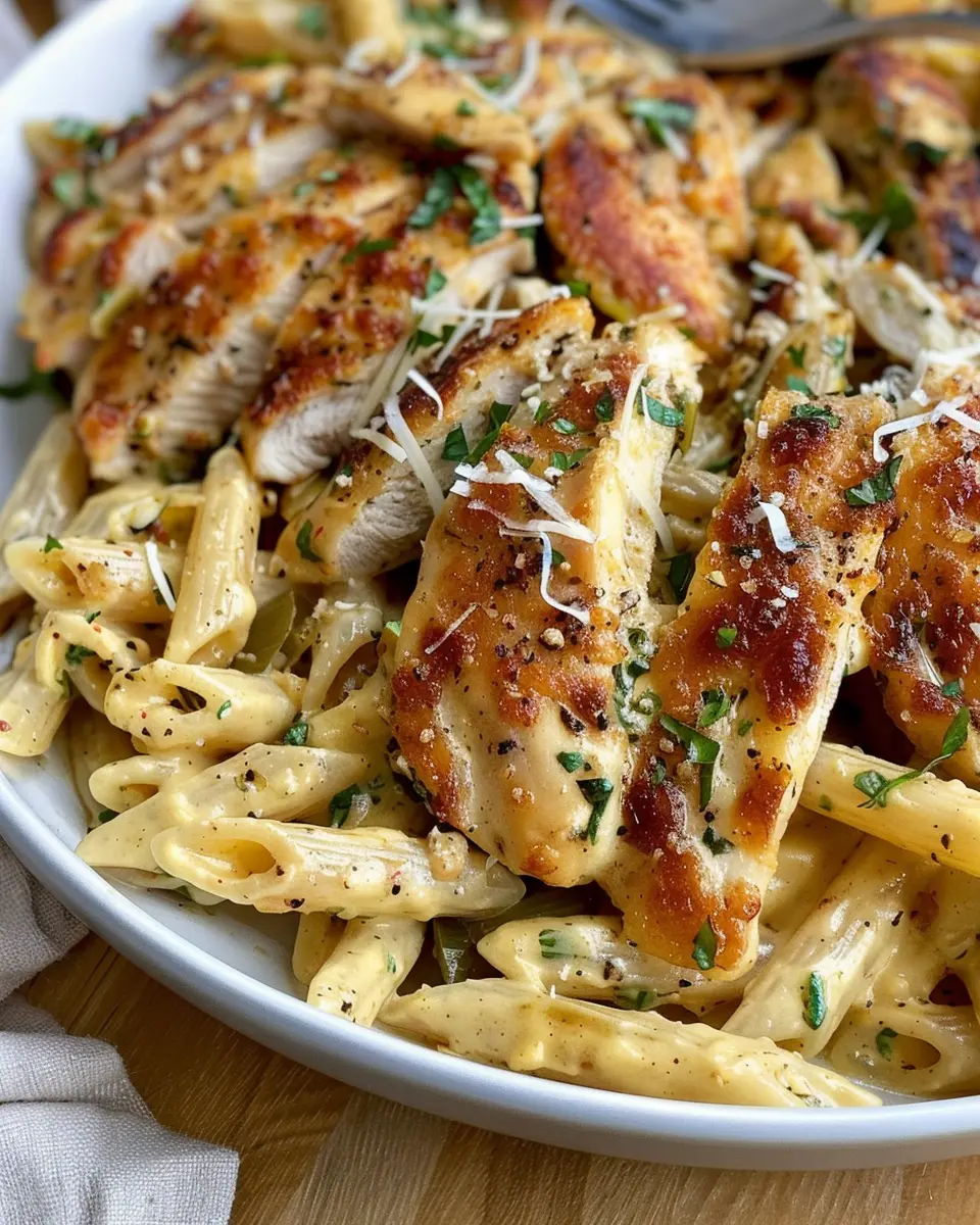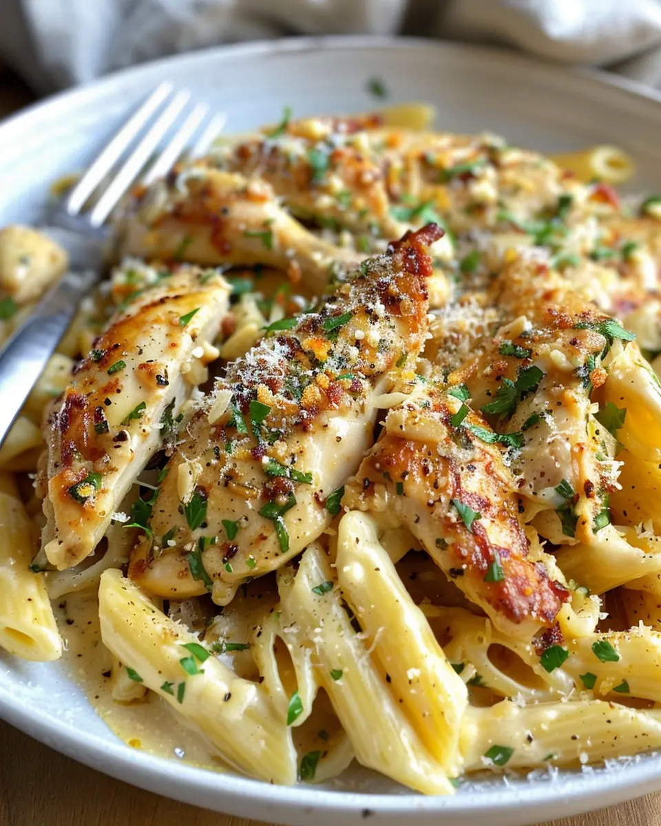 Achieving juicy and flavorful chicken is key in Garlic Parmesan Chicken and Pasta. Start by using boneless, skinless chicken breasts for even cooking. Marinate the chicken in olive oil, garlic, and Parmesan for at least 30 minutes — this not only infuses flavor but also helps tenderize the meat. Make sure to sear each side over medium-high heat until golden; this locks in moisture. Don’t forget to let your chicken rest for a few minutes after cooking for juicier bites.