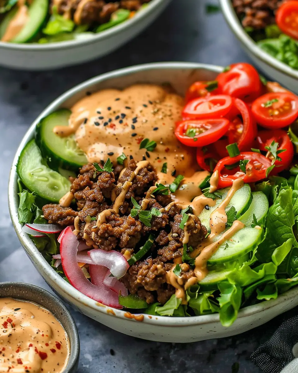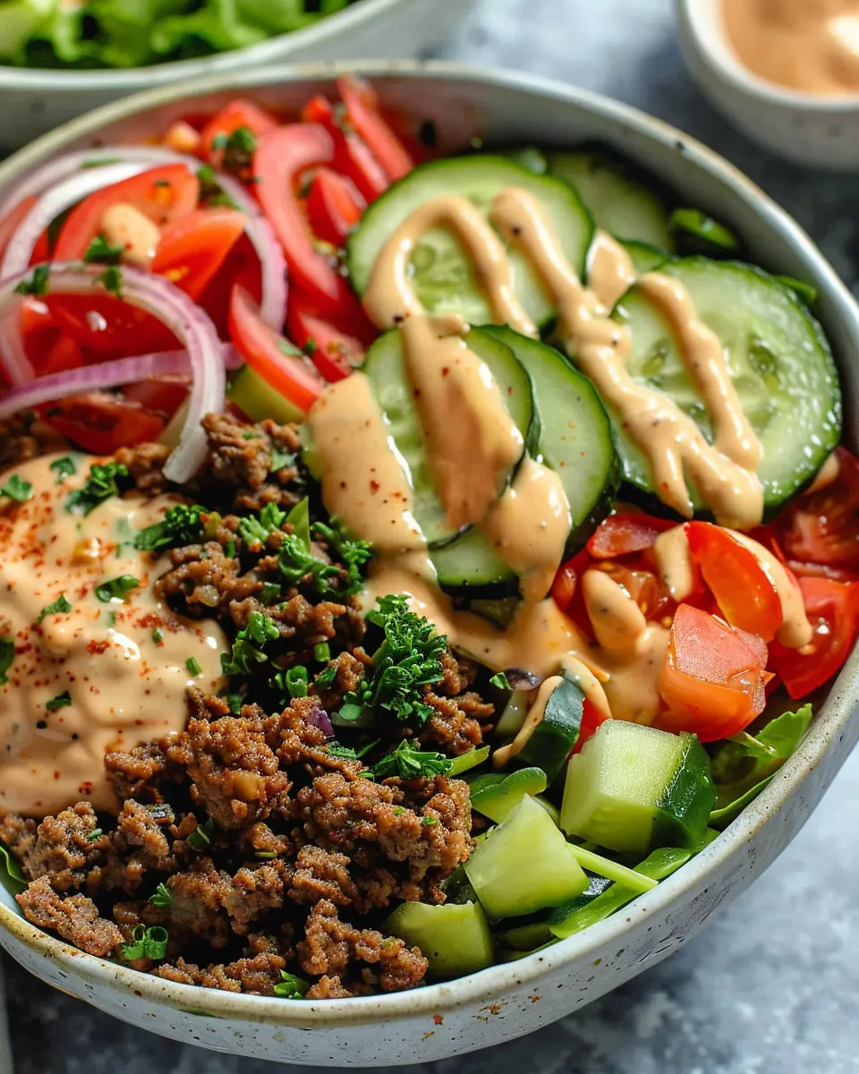 Discover the ultimate fusion of flavors with these Healthy Burger Bowls, featuring a delicious special sauce that will tantalize your taste buds.