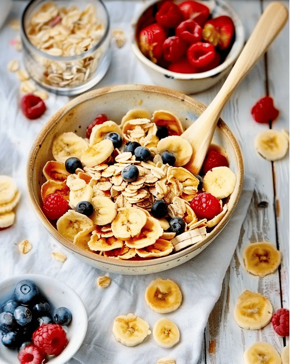 - Fresh fruits like sliced bananas, strawberries, or blueberries.