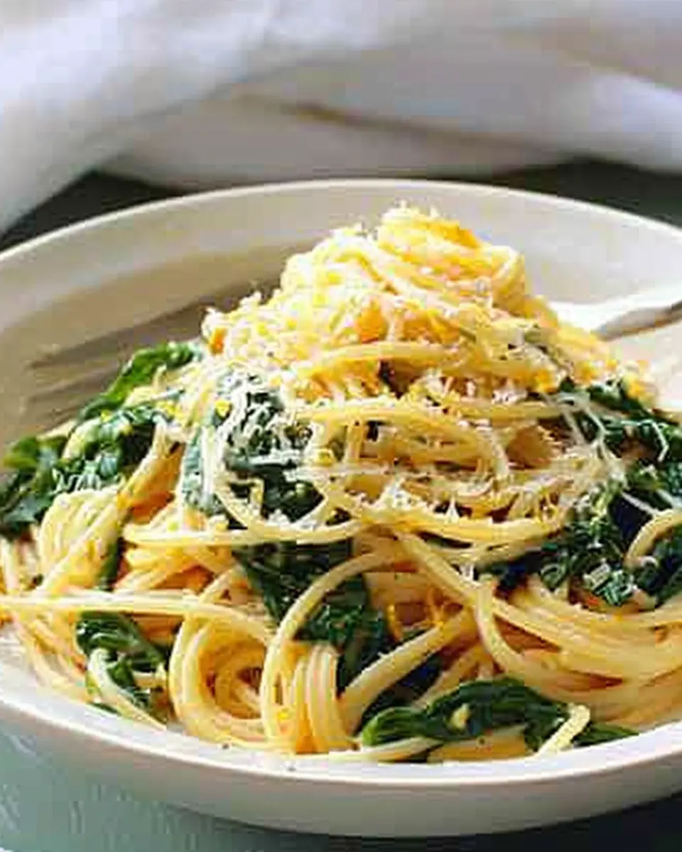 Enjoy a delightful and nutritious meal with orange-spinach pasta, perfect for a quick dinner.