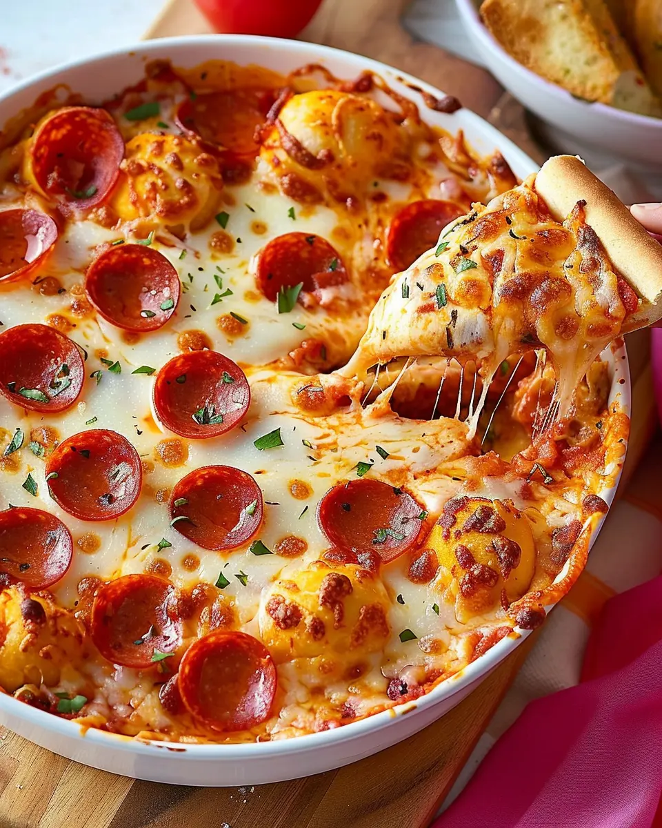 A delicious and savory pepperoni pizza dip that is perfect for gatherings with friends and family.