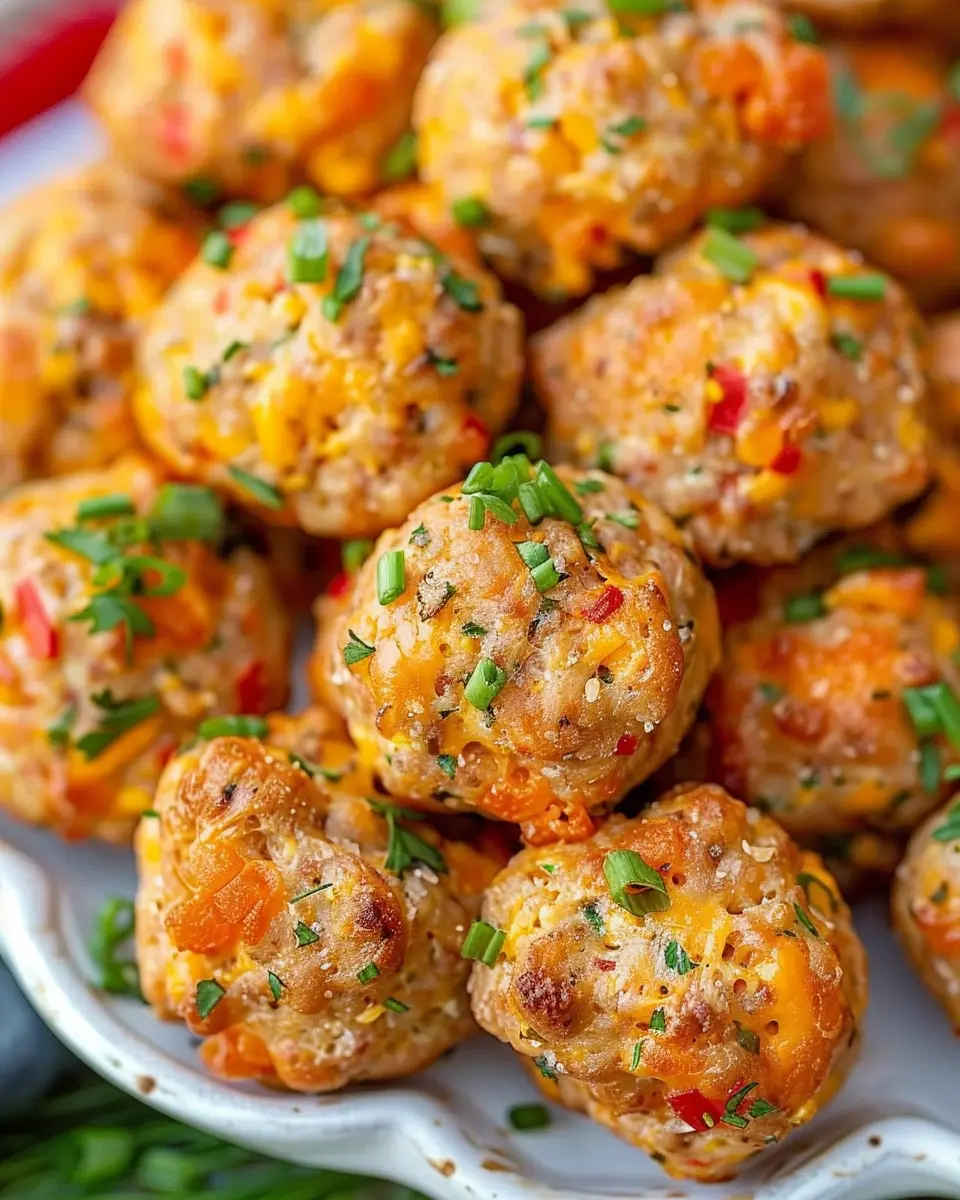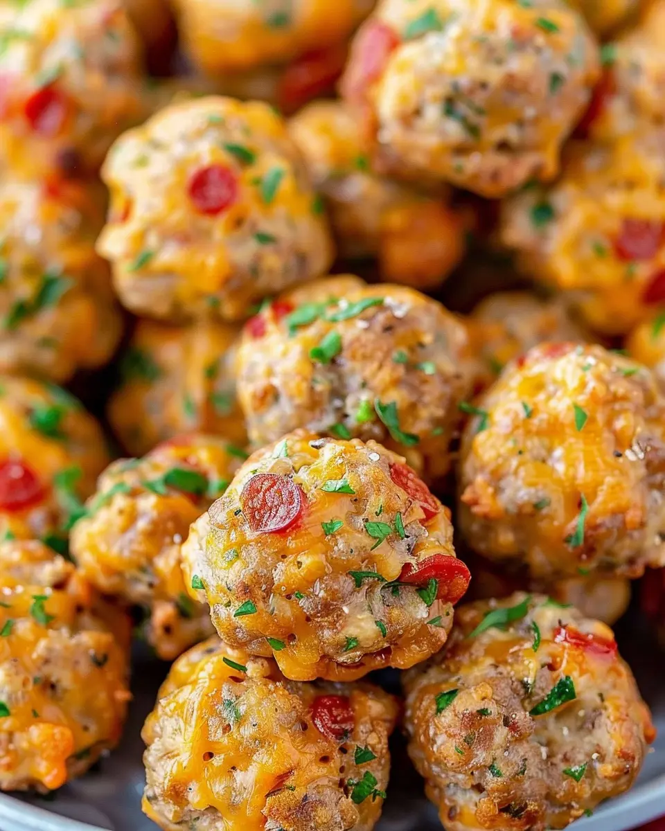 Pimento Cheese Sausage Balls combine savory sausage and creamy pimento cheese for a delectable snack.