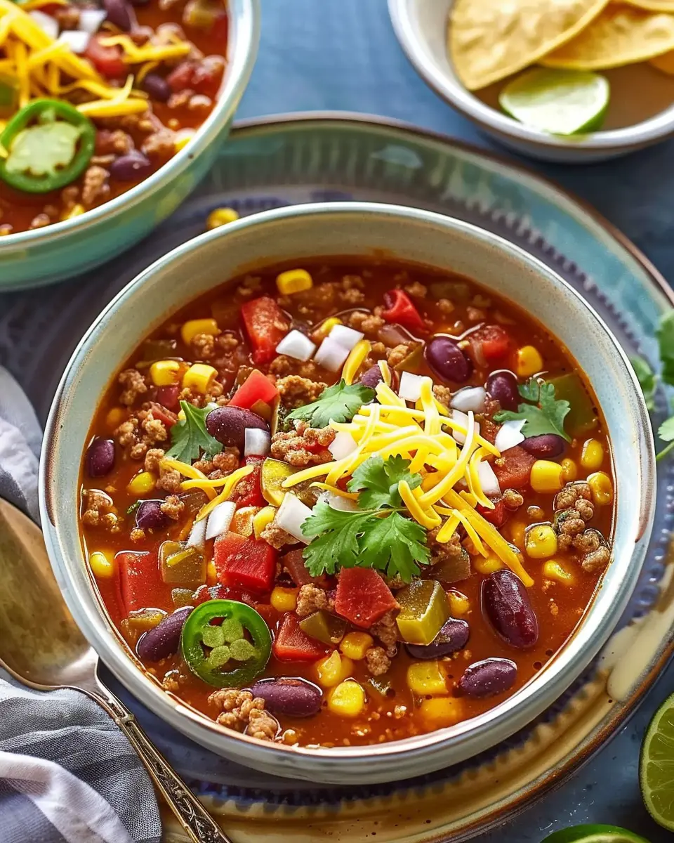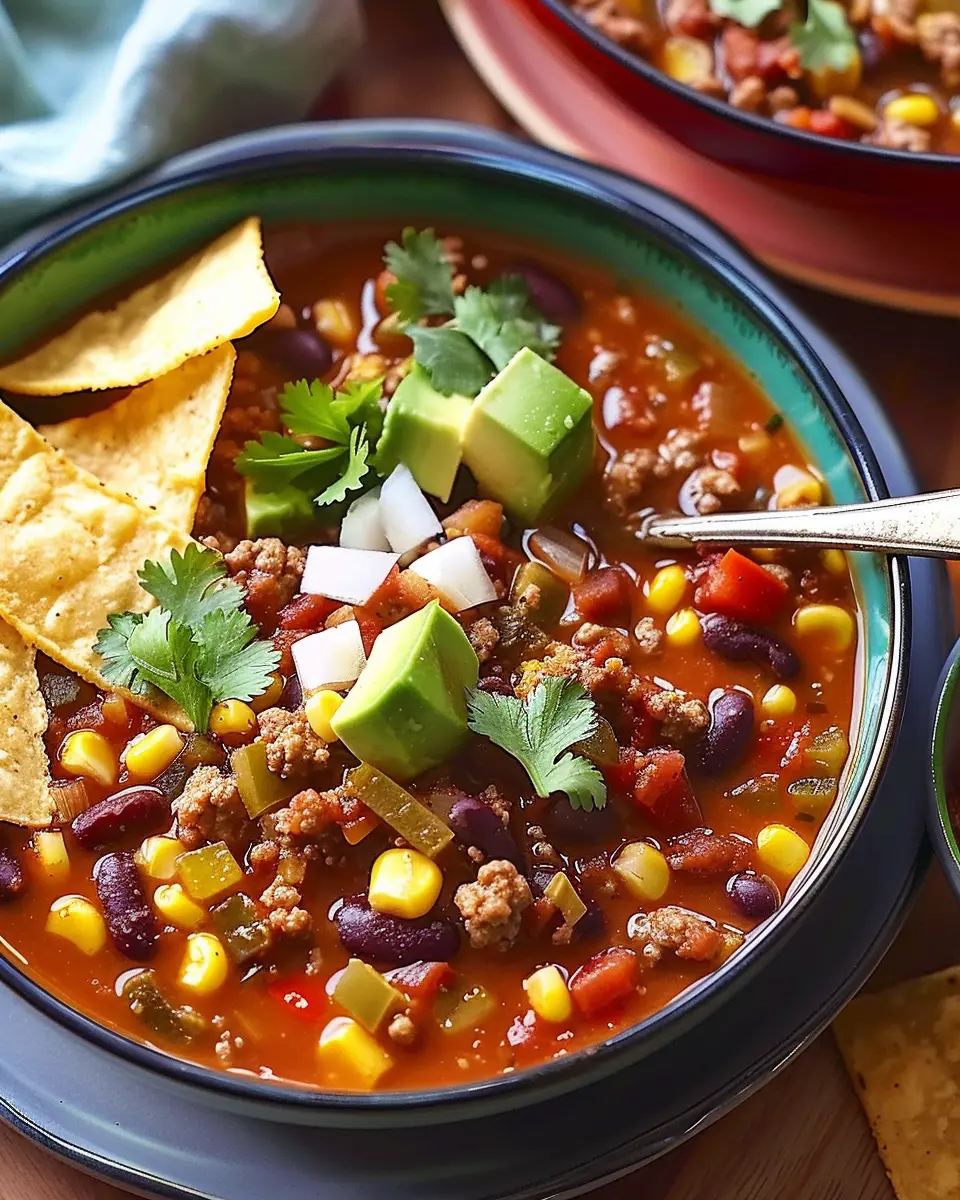 PrintSlow-Cooker Taco Soup: Easy Comfort Food with Turkey Bacon & Chicken Ham