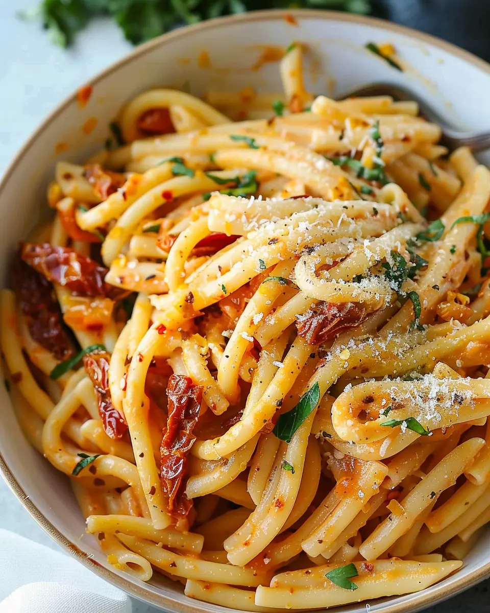 In summary, if you’re looking for a delicious, quick, and versatile dish to brighten up your dinner plans, look no further than sun-dried tomato pasta!