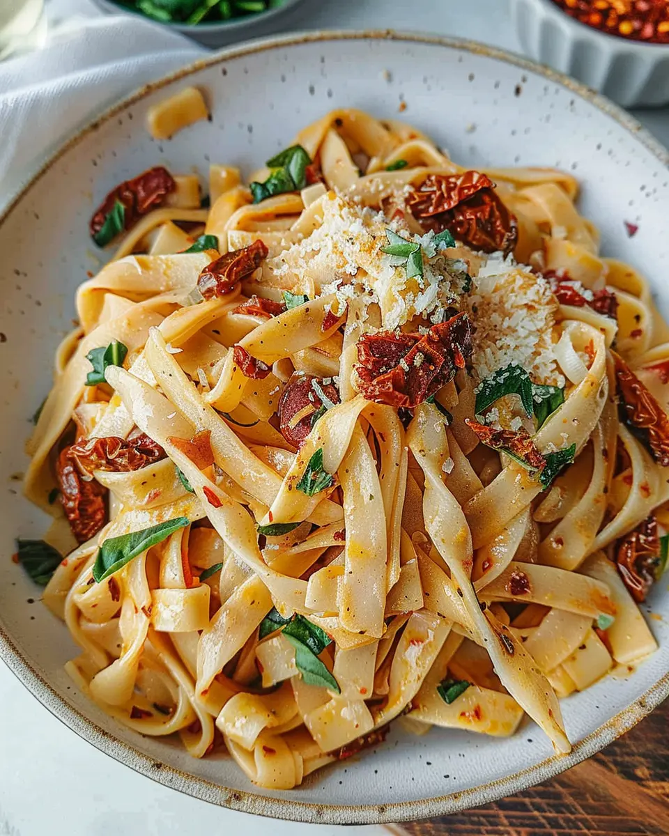 The foundation of any great pasta is quality ingredients. Opt for jarred sun-dried tomatoes packed in oil for a richer flavor. If you find them dry, consider soaking them in warm water or broth to rehydrate.